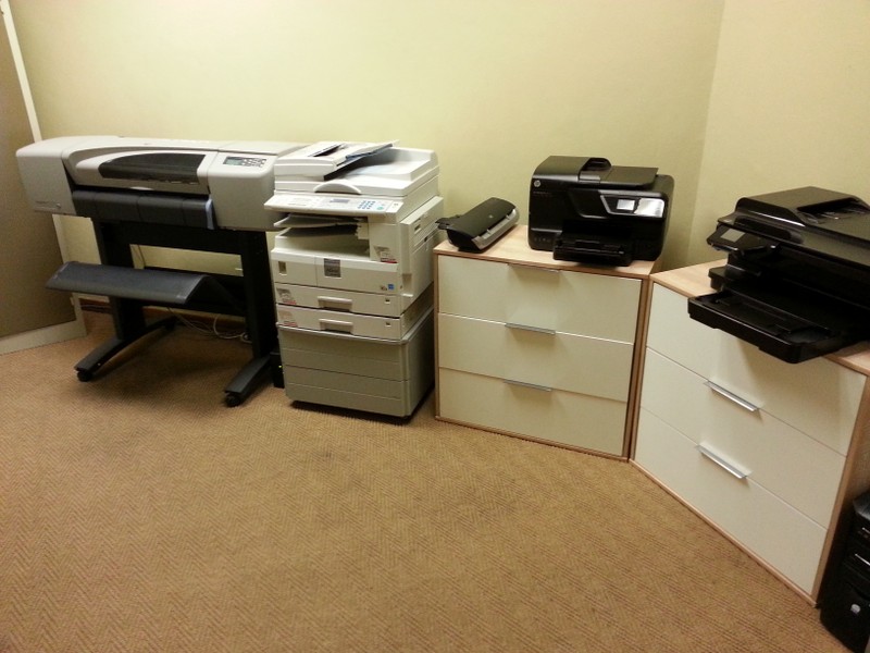 Yes, our computers are fitted with very expensive Quadro graphics cards and our CPU’s are “water cooled”, literally – so that our 3D-models are manipulated seamlessly at highest turbo-speed. We have two A1-sized HP colour printers for drawings. A0-sized prints and copies are done at franchised printing services in town.